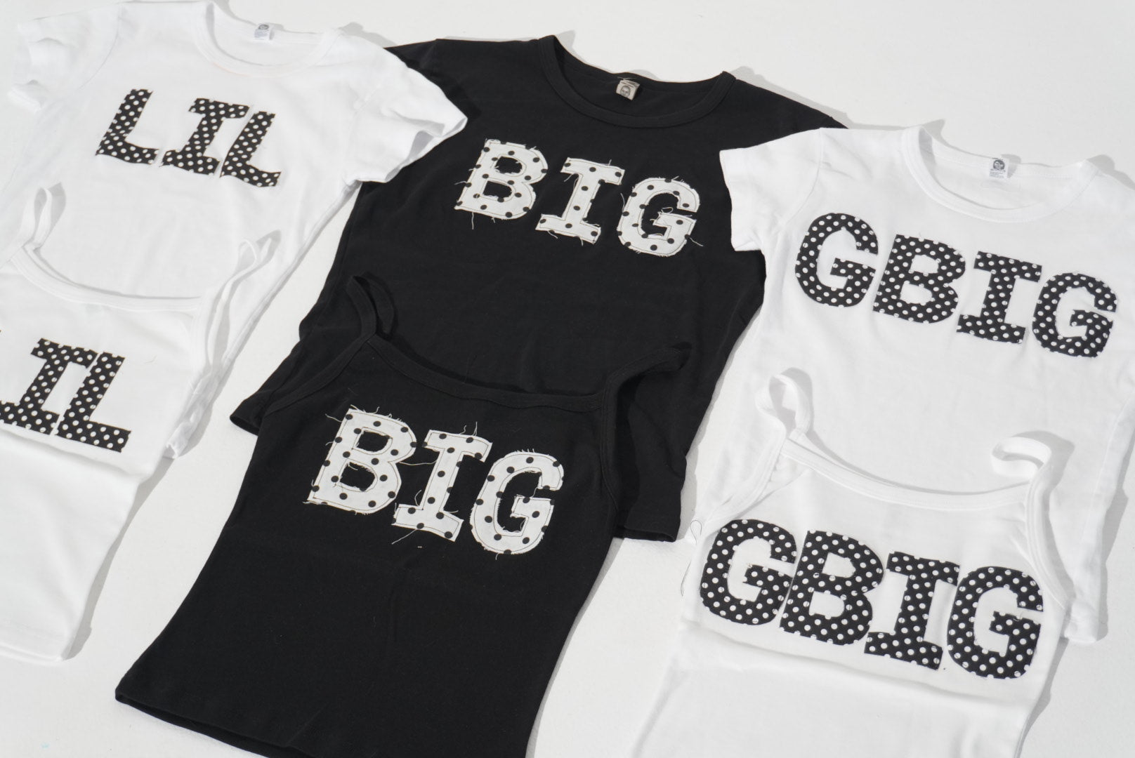 Heads up!!! This pattern is a black fabric with white polka dots, so it only goes on white tops so it sticks out clearly. Just keep this in mind when ordering, for your personal preference. Get exact matching tops and patterns for your fam, or do opposite tops and colors but stay coordinated in polka dots.