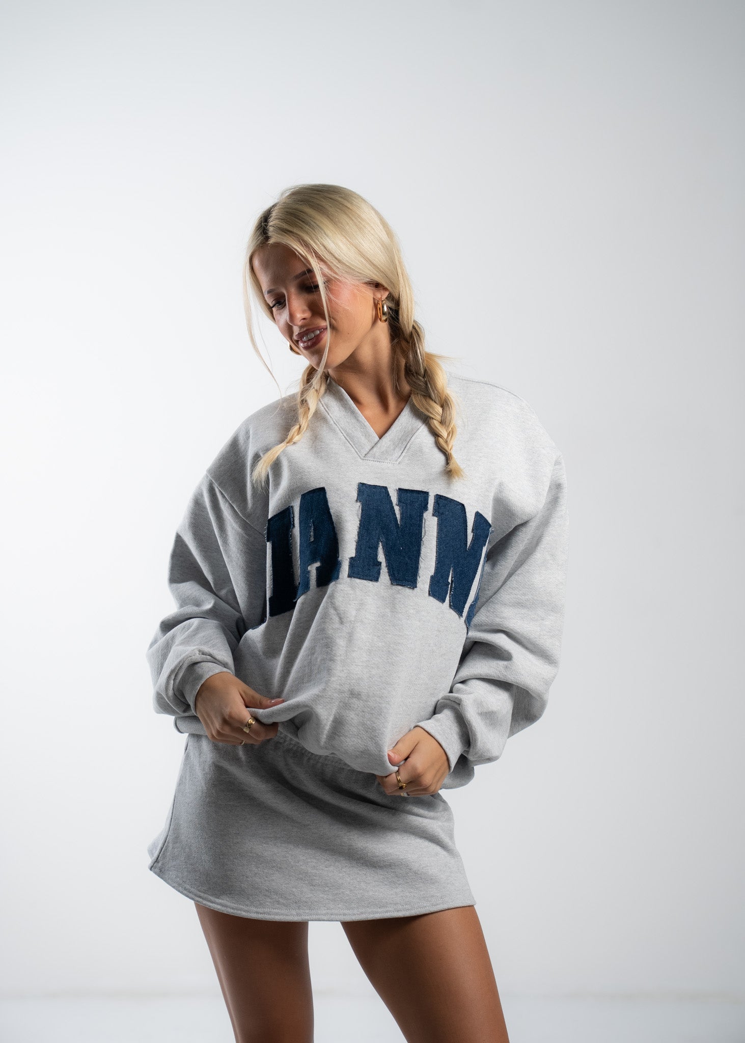 Finished with hand-sewn lettering for a unique touch, every skirt is made to order and tailored to your vibe. Designed to flatter your shape while staying cozy enough for everyday wear.