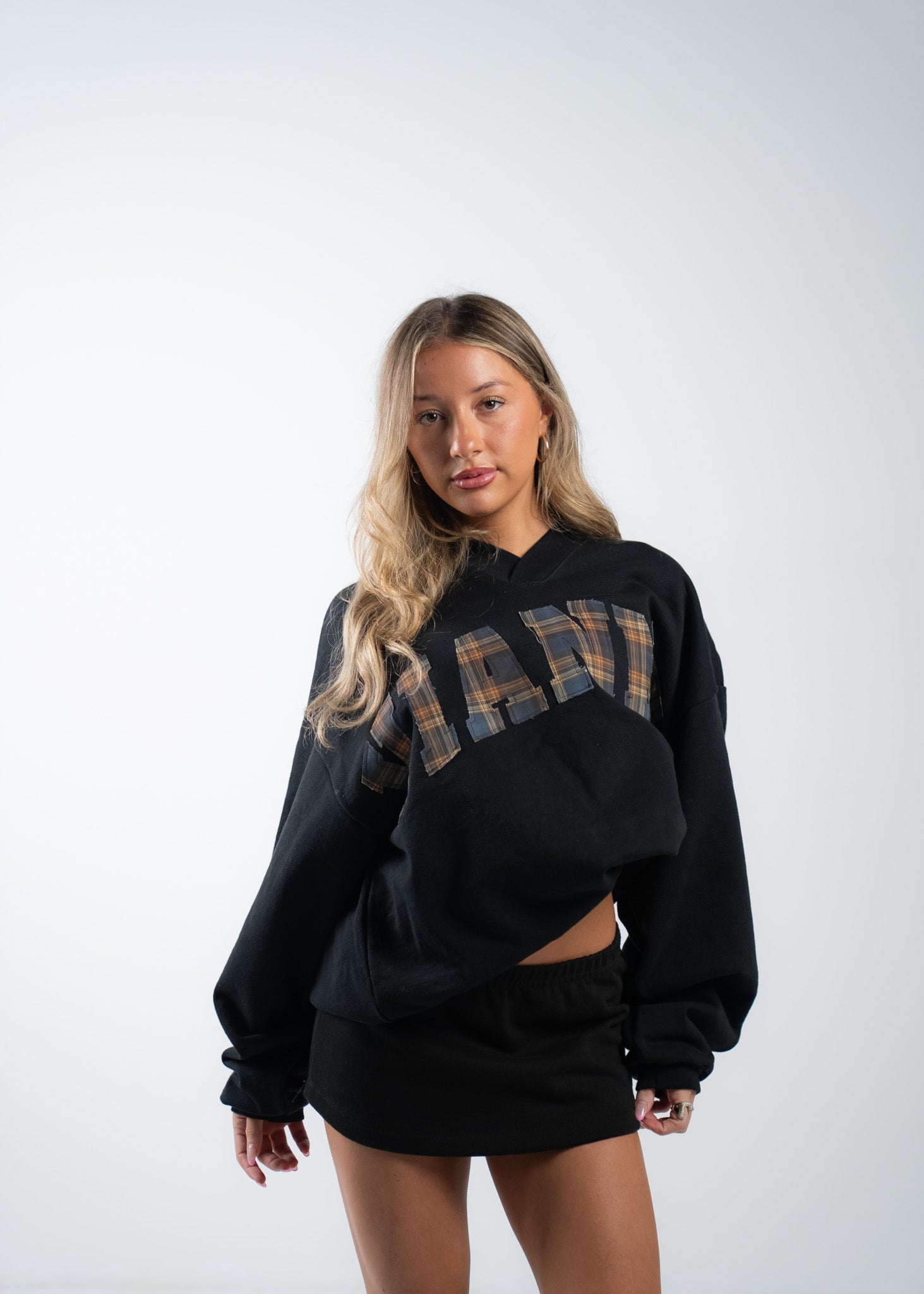 Each piece begins with certified recycled fabric blanks that set the foundation for our sustainable design process. Every letter and embellishment is hand-cut from reclaimed textiles, giving new life to materials that would otherwise go to waste. From there, our in-house seamstress carefully sews each detail by hand, turning every garment into a one-of-a-kind expression of craftsmanship and conscious creativity.